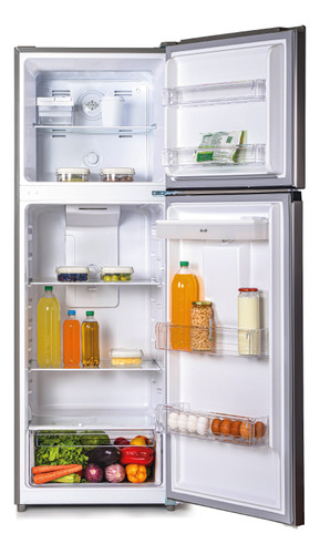 La iluminación LED proporciona una visibilidad clara y el control de temperatura independiente para el refrigerador y el freezer permite una regulación precisa. Los estantes de vidrio templado son resistentes y los bordes anti-derrames evitan cualquier desorden. No incluye cajón multiuso.