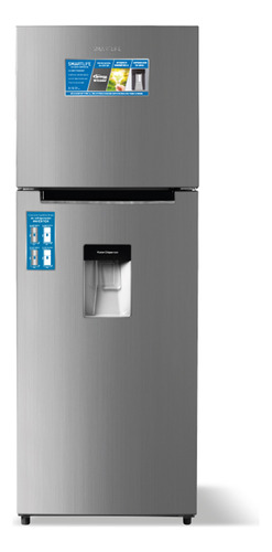 ‘Heladera Inverter Smartlife Frio Seco C/disp 342 L – Inox’ posee una capacidad neta total de 342 L, con un refrigerador de 265 L y un freezer de 77 L. Está equipada con un motor INVERTER y un dispensador de agua. También incluye un Twist Ice Maker y una puerta reversible.
