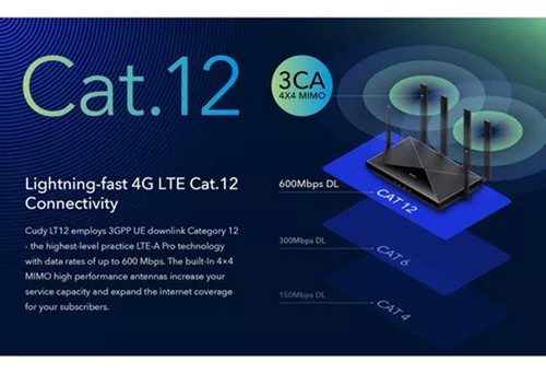 4G LTE-Advanced Cat. 12, Máximo 600 Mbps de descarga