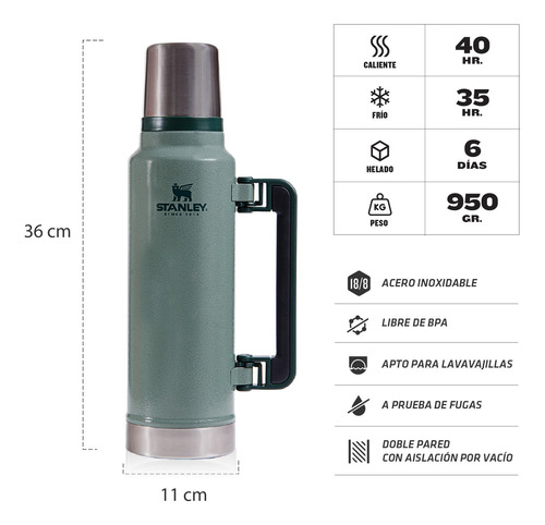 Porque algunas cosas son para toda la vida, este termo Stanley fue pensado para acompañarte a través de los años, ya que durabilidad y estilo son las palabras que definen a la marca. Gracias a su resistencia, obtendrás un gran rendimiento térmico y garantizarás que el líquido permanezca con la temperatura ideal por más tiempo. Además, al ser a prueba de fugas, dejarás de preocuparte por posibles derrames mientras realizás largos viajes o de camino al trabajo.