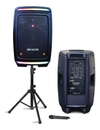 Sistema de audio de 1000W con caja activa de 14″, ideal para todo los eventos. Su sonido potente se complementa con conectividad Bluetooth, USB, batería recargable, iluminación LED y micrófono inalámbrico. Incluye trípode ajustable